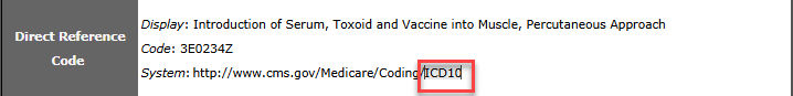 Our team noticed that the human readable file for Childhood Immunization StatusFHIR is displaying the codesystem ICD10 for the ICD10PCS code 3E0234Z 'Introduction of Serum, Toxoid and Vaccine into Muscle, Percutaneous Approach'. It was suggested by the AIR team that MADiE may be able to pull in the PCS specific codesystem. Could you please confirm if the display of this url system is correct? Please let us know if you need any additional information.