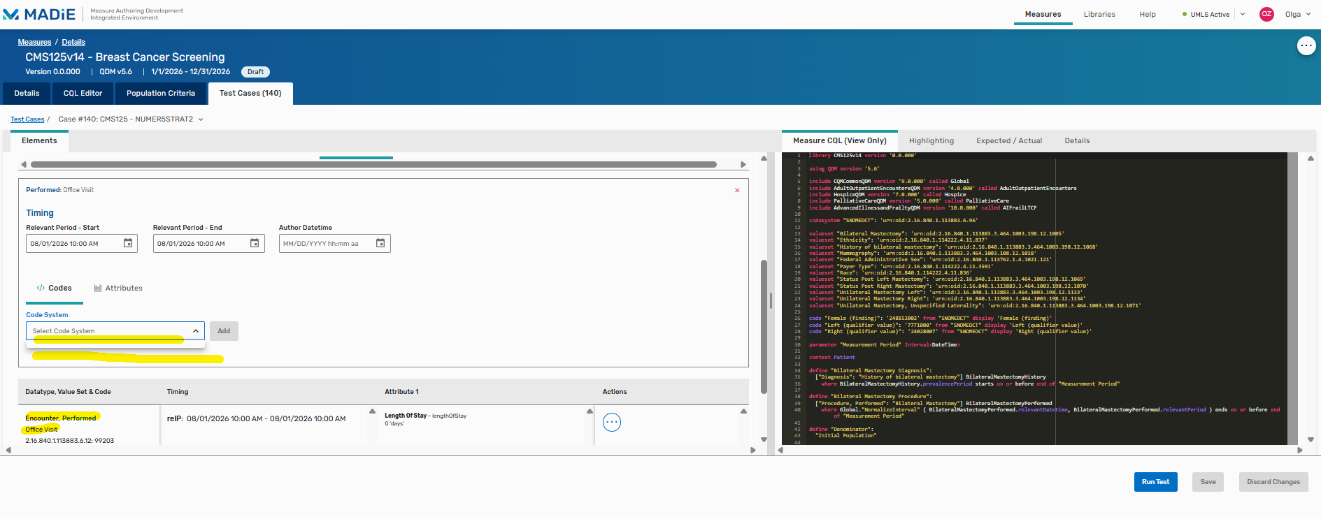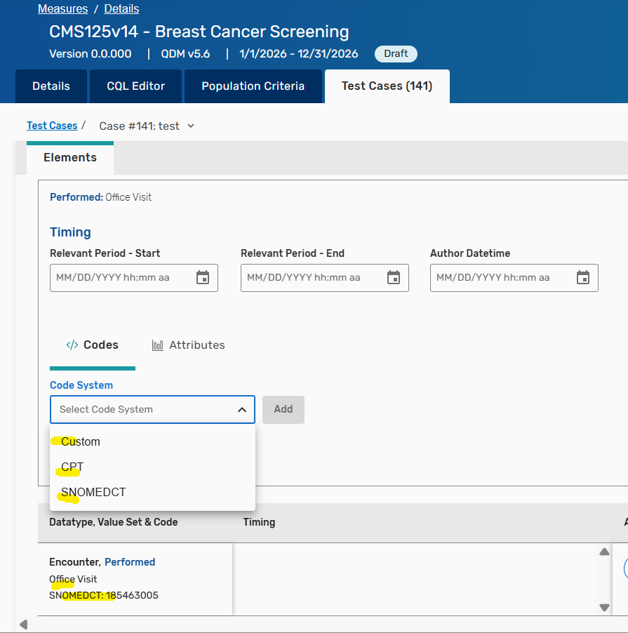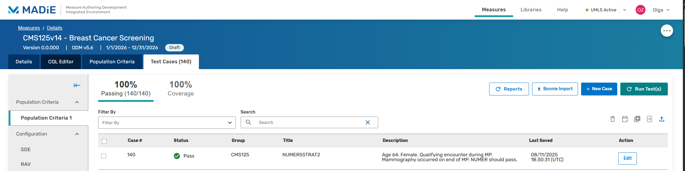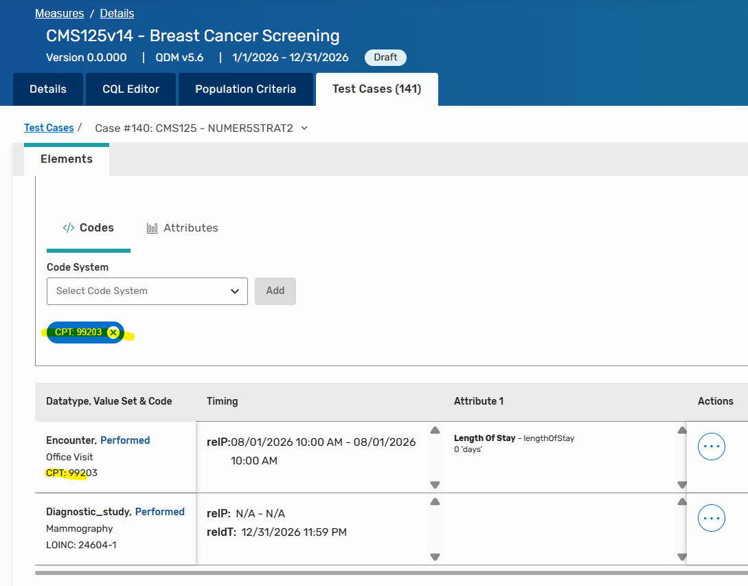 Yesterday I have created test cases for this measure CMS125v14 - Breast Cancer Screening https://madie.cms.gov/measures/66b13bdfee2fb93c15793366/edit/details/