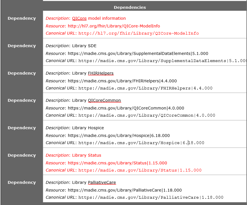In MADiE - for CMS951FHIR, 5 libraries are declared: