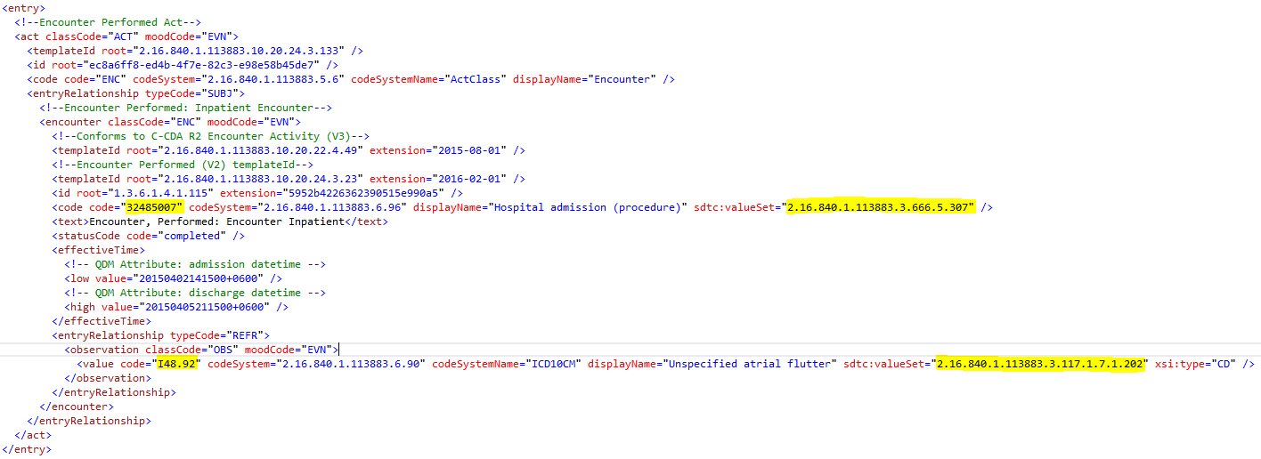 During the Cypress 3.1.0 Sampling C1+C3 testing we have all our data passing except for one part. Attaching screenshots to display that it looks like our XML should be passing but it doesn't. Something is missing and we can't find any documentation detailing how the diagnosis attribute should show up in the encounter performed. We have other samples with the principal diagnosis and that works just fine but not one without the principal.