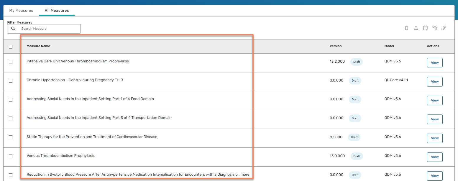 Can you provide the Measure Name for the other impacted measure libraries? As you may be aware, MADiE doesn't currently have the ability to look up a measure using the measure CQL library name (There is a submitted enhancement request for this functionality). To ensure we are looking at the right measure in MADiE, can you provide the Measure Name as it appears in the measure list on the All Measures list page or the measure details page URL.