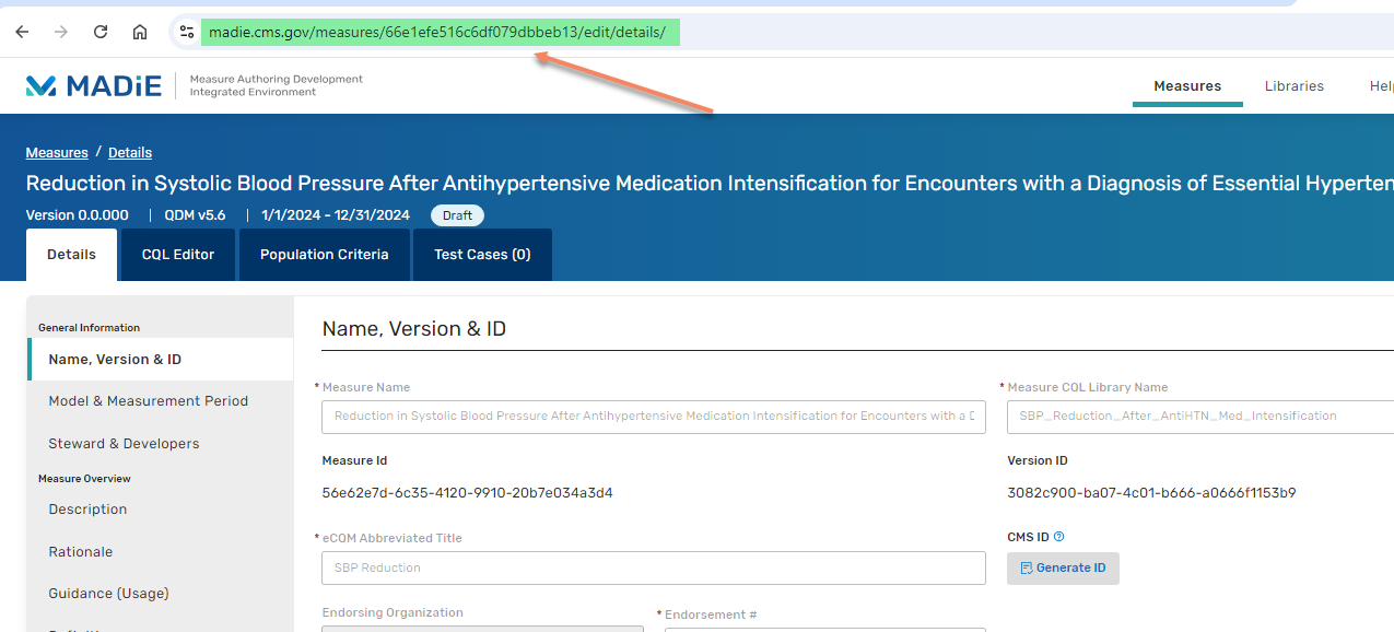 | Measure/Library URL: | https://madie.cms.gov/measures/6711651bfe4858683bc65ed0/edit/cql-editor |